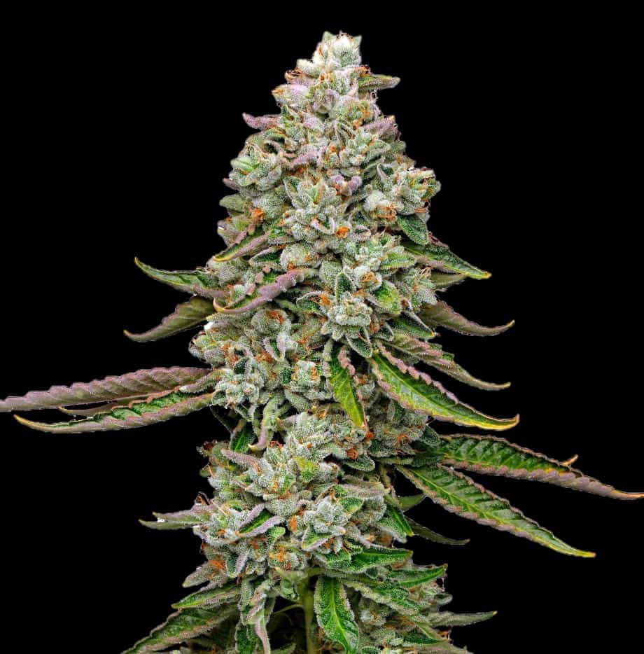 Short, thick lateral branches hold chunky, golf‑ball buds coated in crystalline resin. Fan leaves trend narrow‑to‑medium width, hinting at Sativa vigor, while internodal distance remains tight enough to pack on weight without sacrificing airflow. Expect purple or lavender streaks late in bloom if nighttime temps dip below 18 °C—a bag‑appeal bonus that plays beautifully against the strain’s snowy trichome coat.