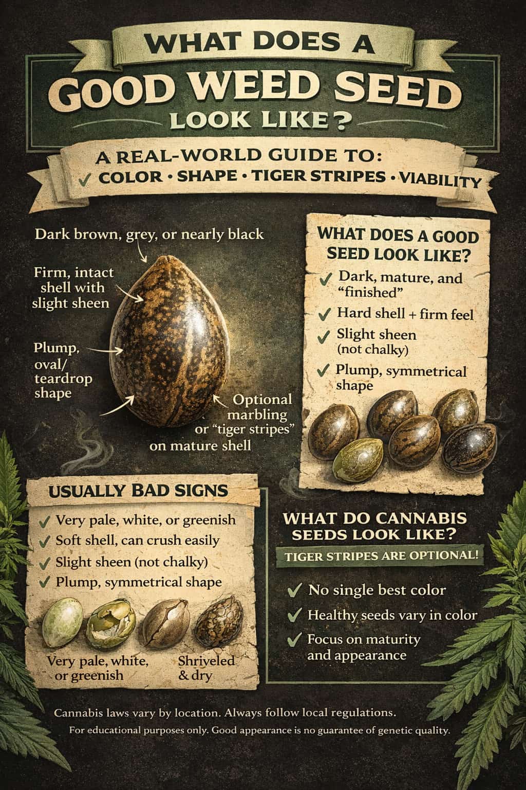 What Does a Good Weed Seed Look Like? A Real-World Guide to Color, Shape, Tiger Stripes, and Viability